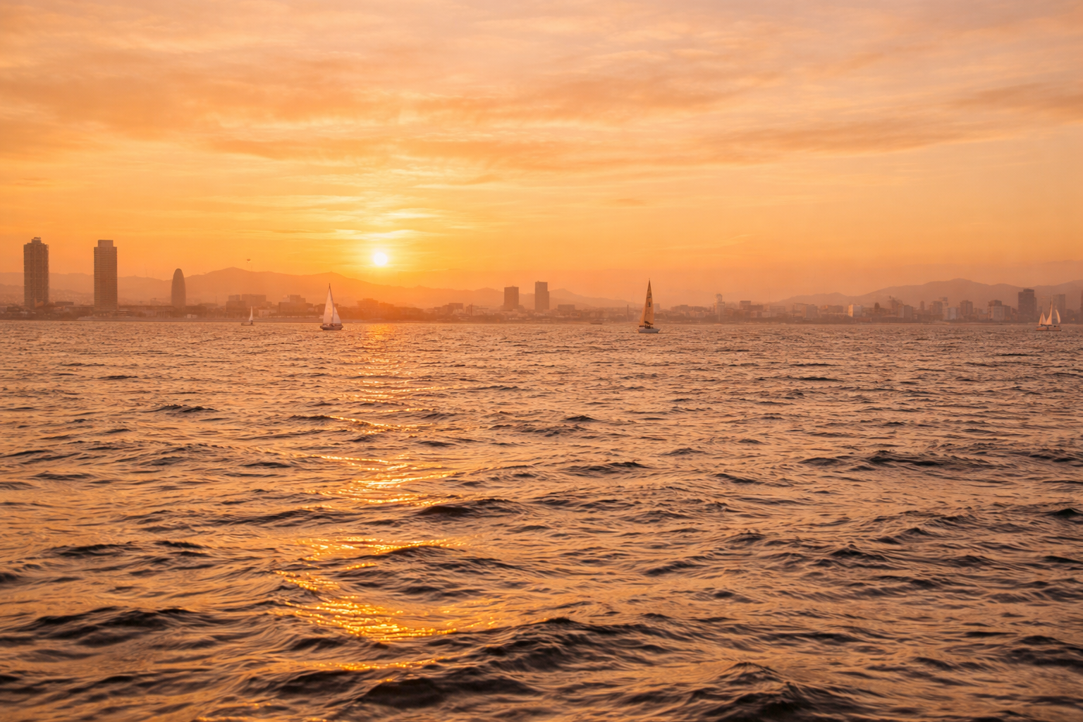 - Golden hour à Barcelone : voyez le skyline de la ville se teinter de tons dorés depuis la mer.
